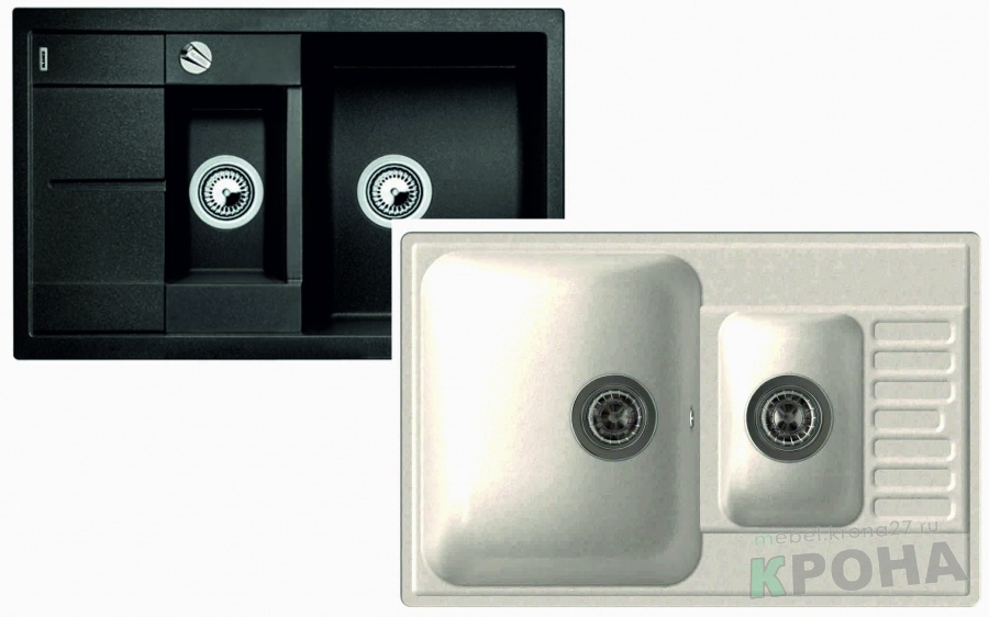 Композитные мойки делают из каменной крошки (возможны три варианта – гранитная или мраморная крошка и кварцевый песок) и специального связующего вещества на основе смол и пигментов. У каждого производителя свой состав искусственного камня, свои компоненты, своя технология производства и, как правило, запатентованное название. Такие мойки экологичны и за ними легко ухаживать, не боятся высоких температур (максимум +280). Кстати, такие мойки отлично поглощают шум льющейся воды. Так же к плюсам можно отнести разнообразие форм и расцветок, имитирующих натуральный камень самых причудливых оттенков.