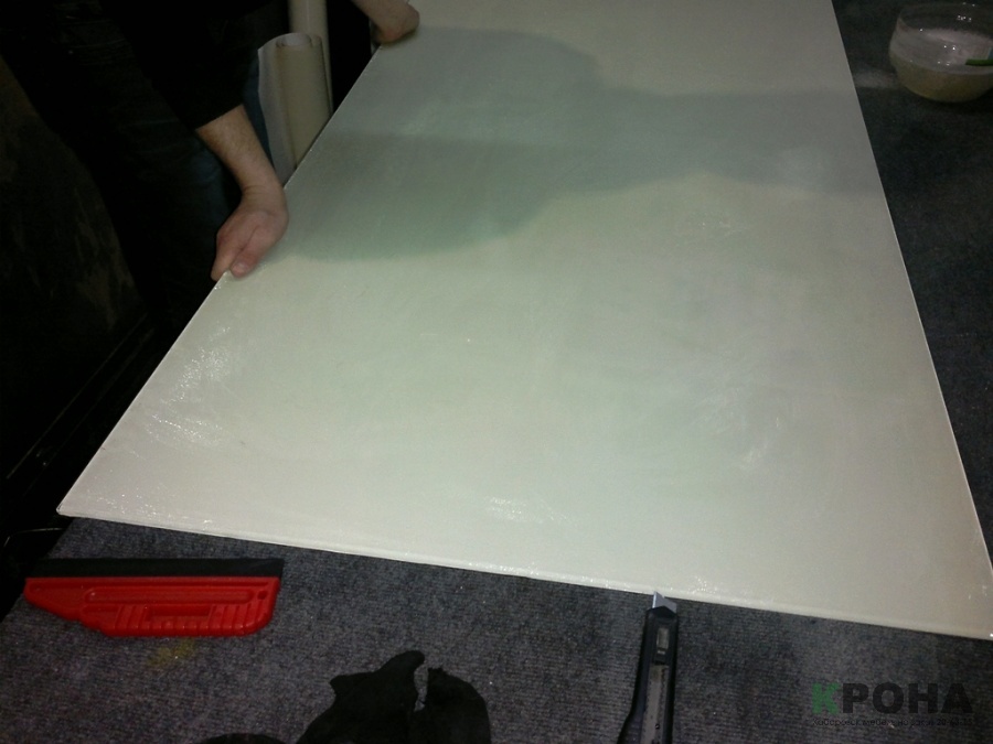 Подготовка стекла должна проходить особо тщательно, не должно быть ни малейшей пыли или других артефактов на стекле.