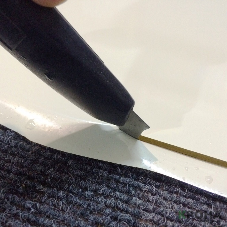 Лишняя пленка срезается по краю стекла, после чего, еще раз необходимо выгнать излишки влаги ближе к срезу.