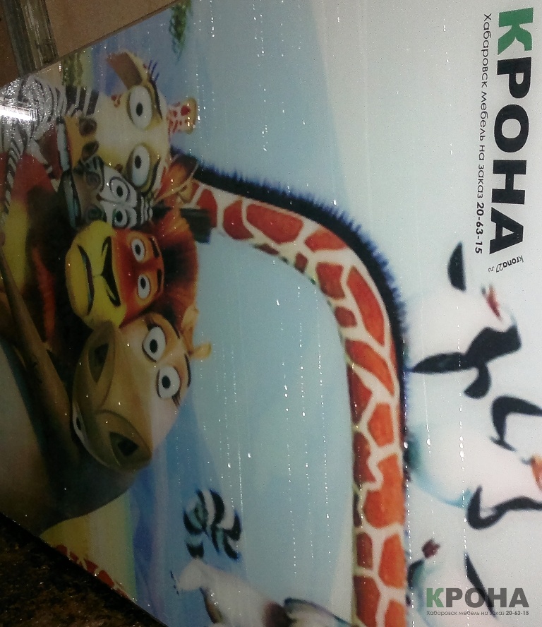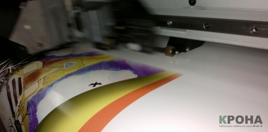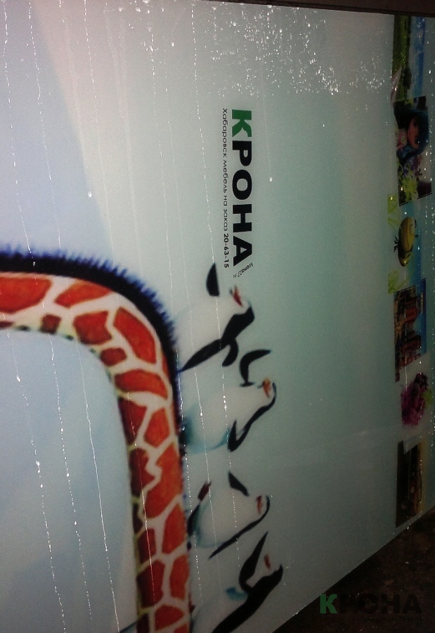 Крона использует все 3 метода и сегодня мы расскажем и покажем один из них, а именно: нанесения фотопечати при помощи виниловой пленки с изображением. Этот метод широко применяется при изготовлении фотопечати на двери шкафа-купе или фото-картин.