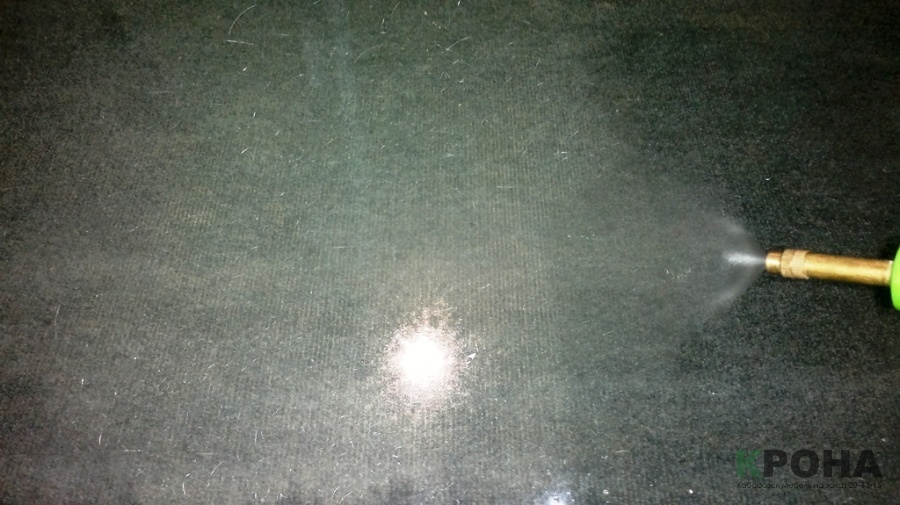 Помещение, где будет производиться работа, должно быть герметичным, чистым, без сквозняков и тп. Дополнительно можно создать высокую влажность и использовать ионизаторы, увлажнители для чистки воздуха. После тщательной подготовки стекла и осмотра его поверхности, необходимо создать водную пленку на его поверхности, вода необходима для того, что бы под винилом не образовывались пустоты. Для лучшего эффекта в воду можно добавить немного мыльного раствора с нейтральным ph.