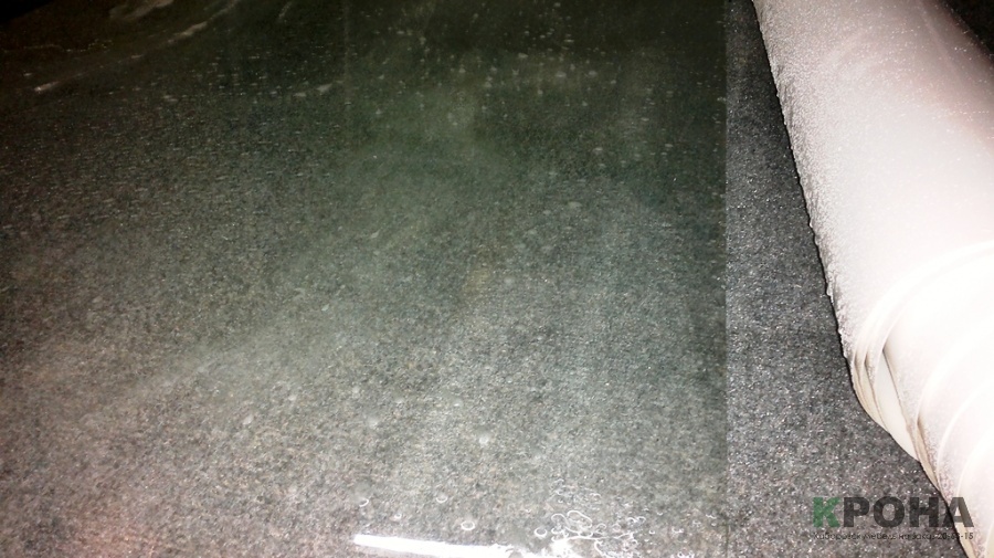 Далее следует кропотливый, требующий внимания процесс выгона лишней влаги и воздуха из под пленки.