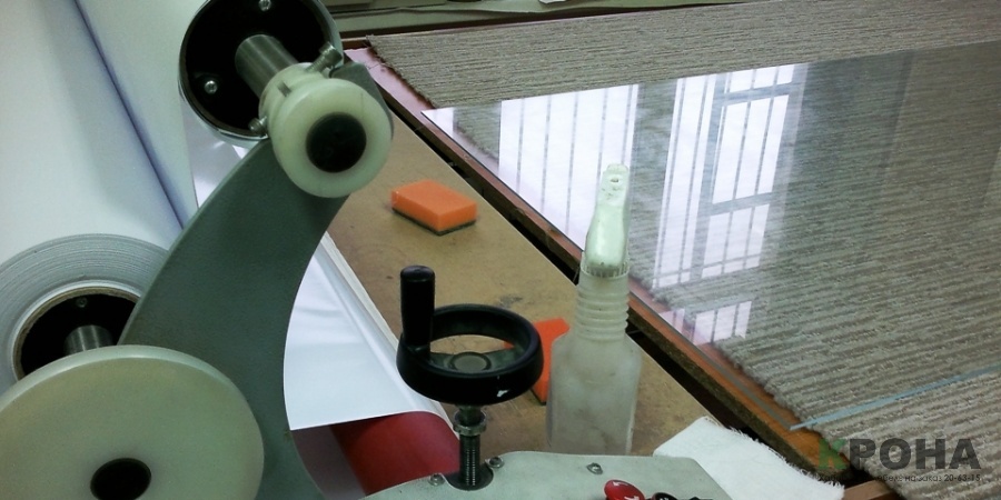 При этом можно воспользоваться двумя различными способами: При помощи оборудования: стекло проходит под прижимным валом, и в процессе на него будет нанесен слой винила.