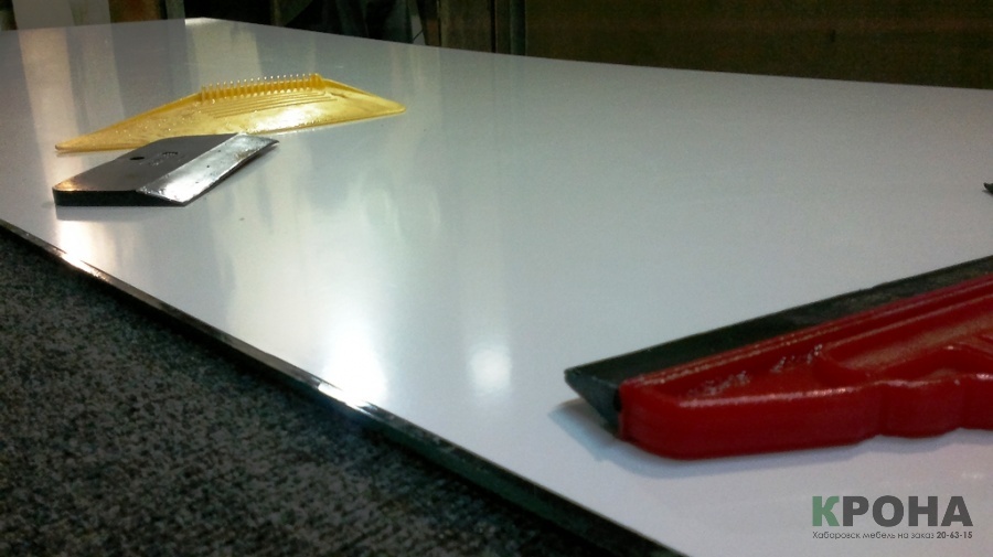 Многослойность необходима для того, что бы наше изображение было с тыльной стороны стекла, плюс дополнительное армирование, т.к. острые предметы в шкафу купе, при скольжении двери могут случайно повредить фотопечать.