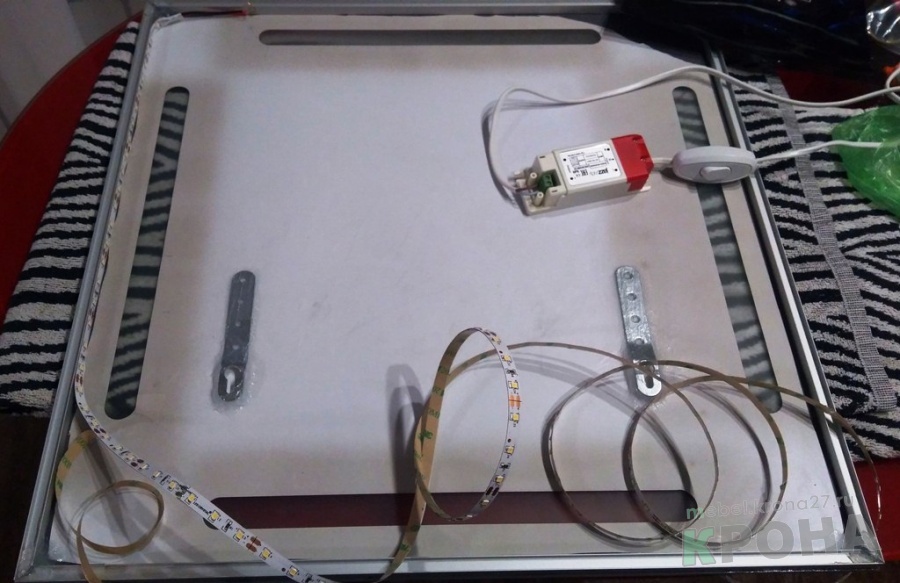 Чтобы сохранить "тонкость" изделия, трансформатор и выключатель было решено вынести за пределы зеркала.