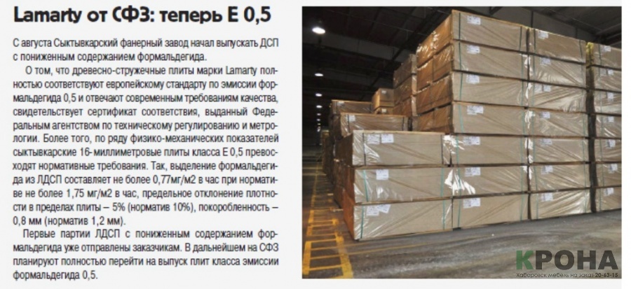 Продукция ООО "СФЗ" - плиты древесностружечные, облицованные пленками на основе термореактивных полимеров, класс эмиссии формальдегида Е0,5 - соответствует требованиям ТУ 5534-004-44769167-06; «Единым санитарно-эпидемиологическим и гигиеническим требованиям к товарам подлежащим санитарно-эпидемиологическому надзору (контролю). Глава II. Раздел 6. (Требования к полимерным и лолимерсодержащим строительным материалам и мебели)», утв. Комиссией Таможенного Союза 28.05.2010 г. № 299.Сертификат и декларация о соответствии ЛДСП требованиям ГОСТ