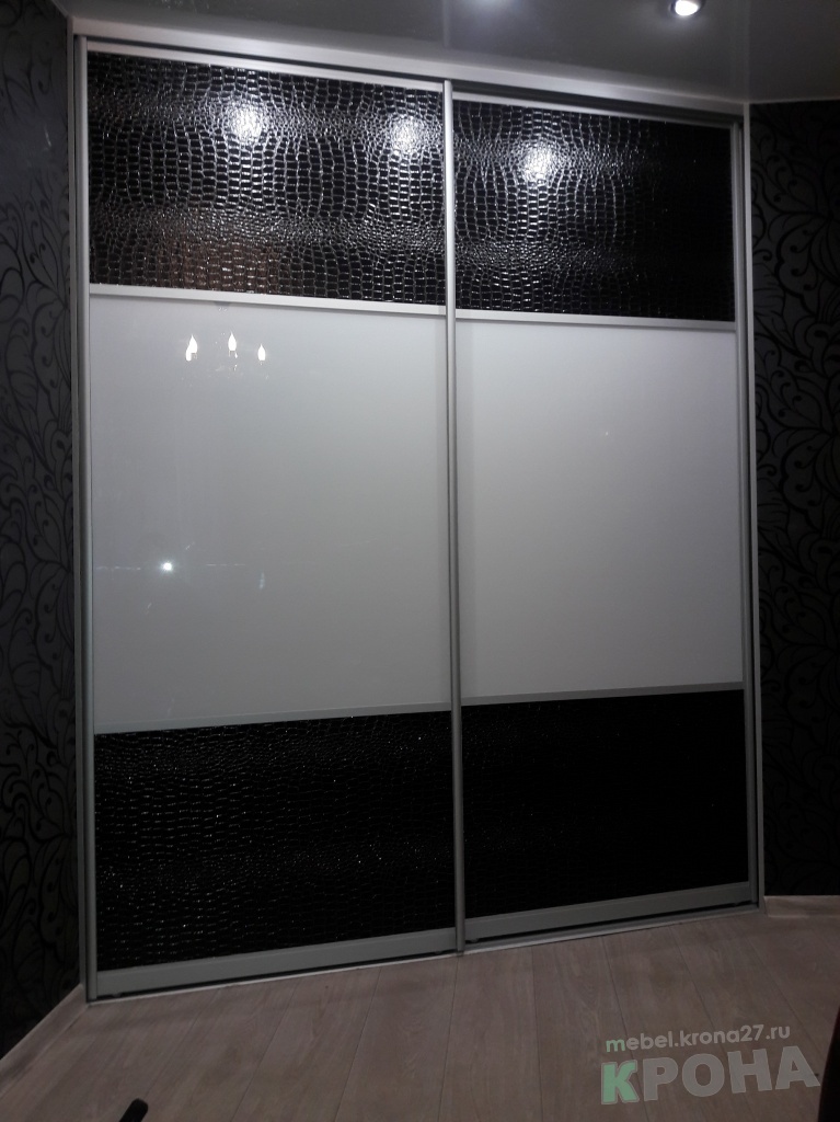 Шкаф купе с дверями пластик и вставками кожи.