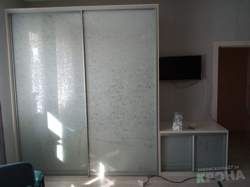 Шкаф купе белый глянец с крашеными стёклами и зеркалами
