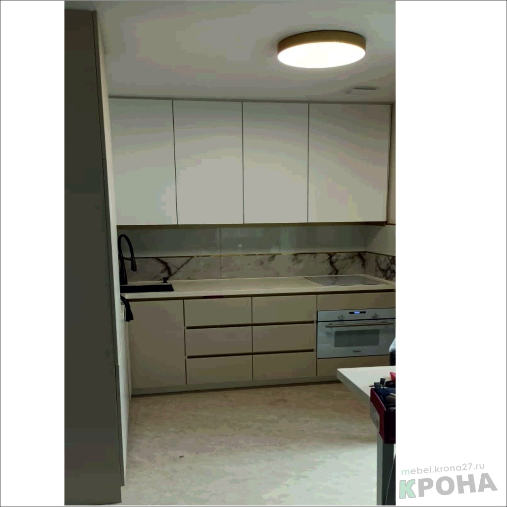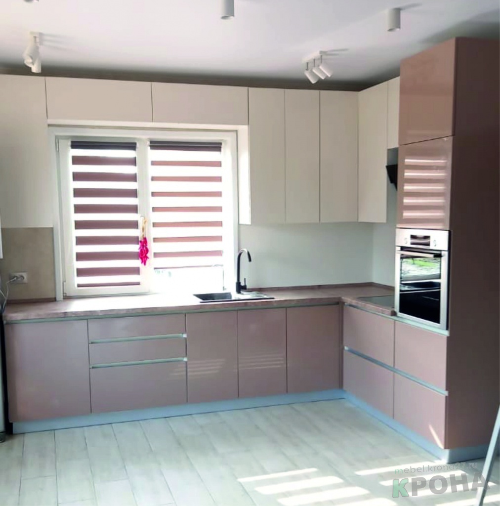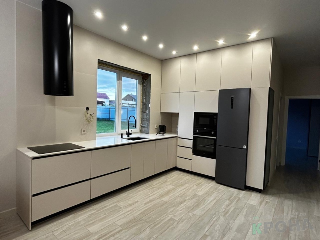 | Вид кухни: | кухня угловая, фасады лакокраска, интегрированные ручки |