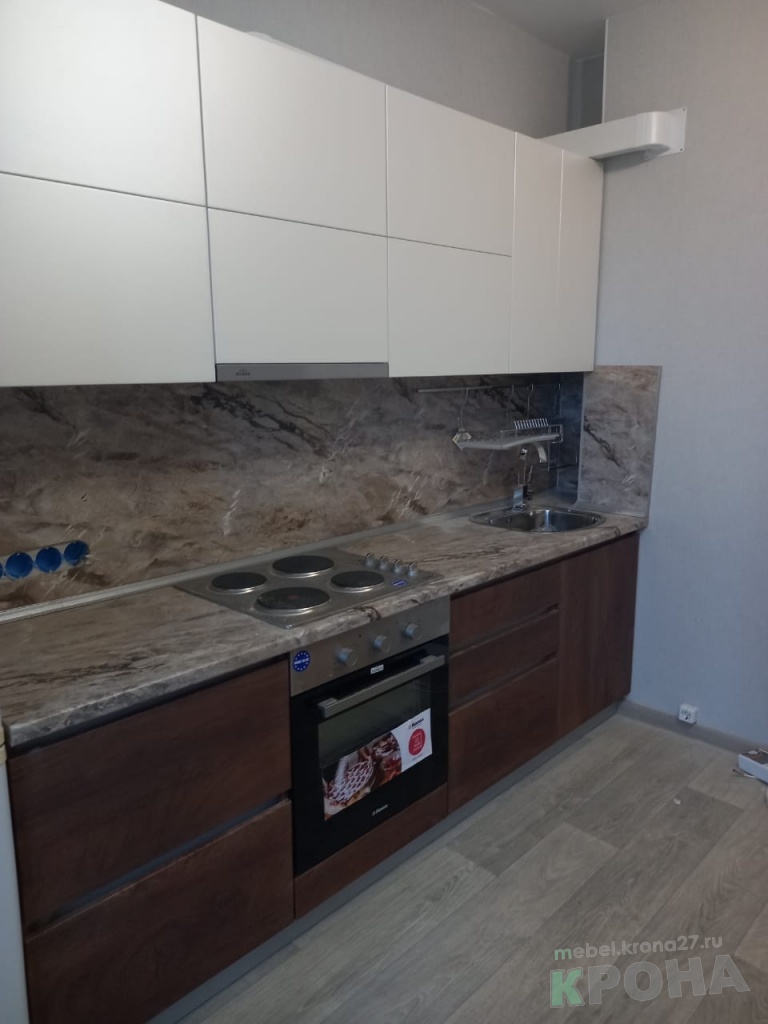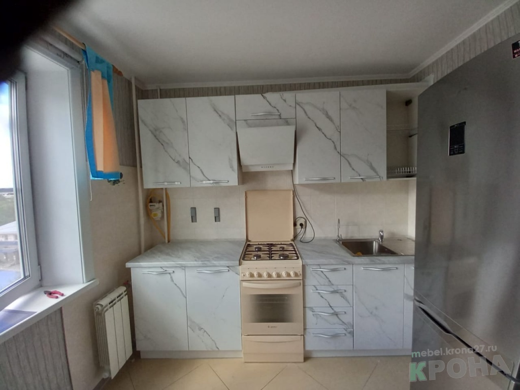 | Вид кухни: | прямая кухня под мрамор, фасады-мдф пленка |