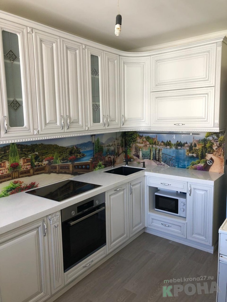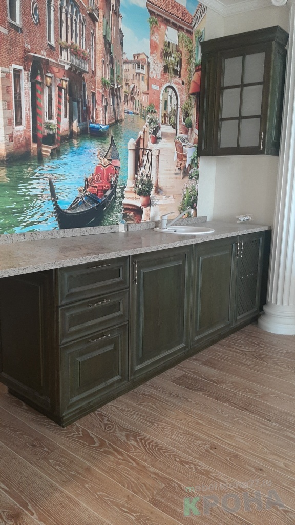 Кухня под классику с фотопечатью и каменной столешницей