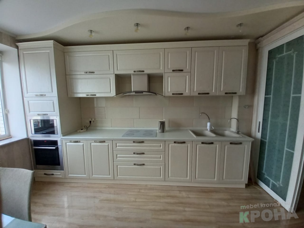 Кухня встроенная, прямая с фасадами лако-краска