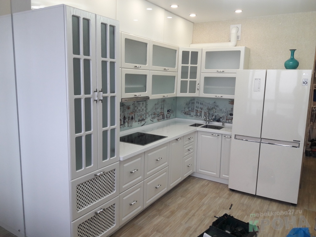 Кухня угловая с фасадами белей глянец