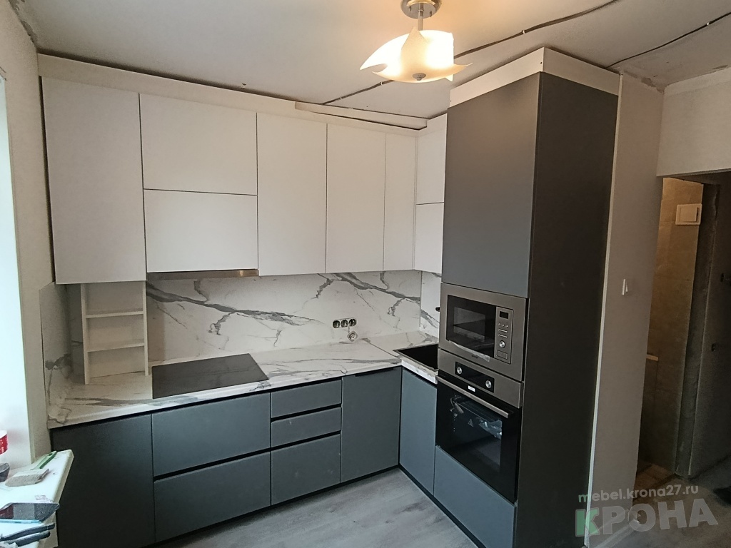 Кухня угловая со встроенной техникой