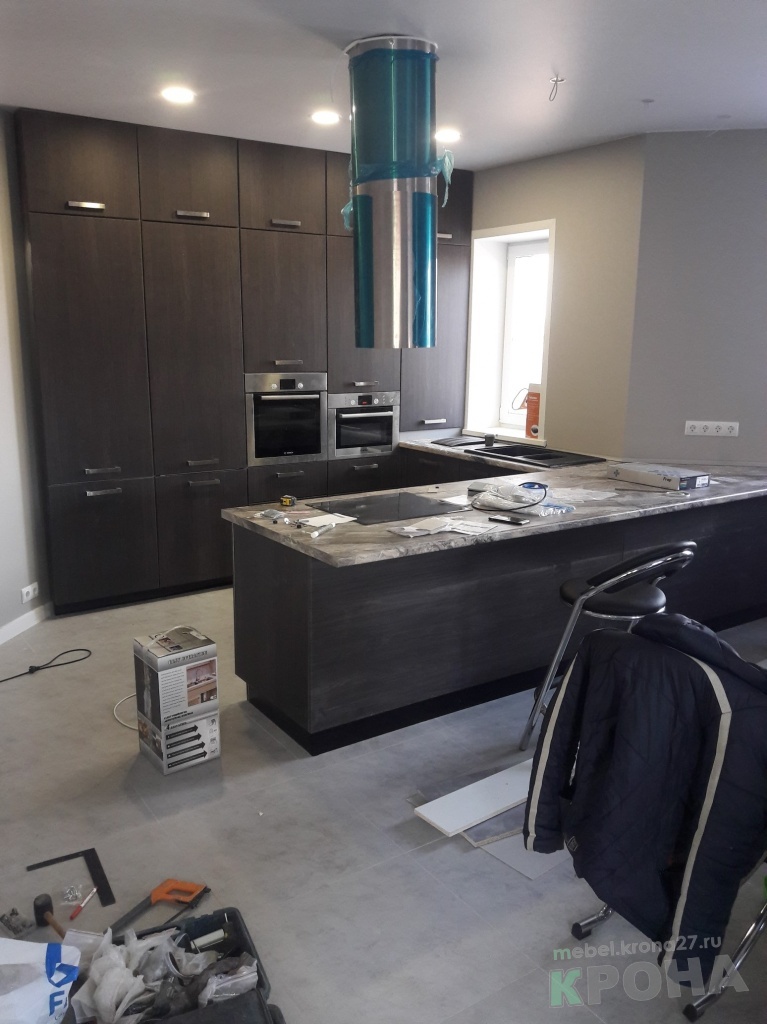 Кухня на заказ в Хабаровске. Фасады пленка. Светодиодная подсветка.