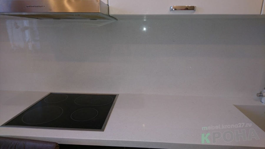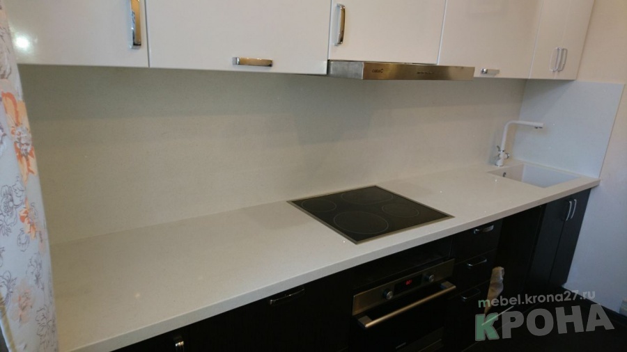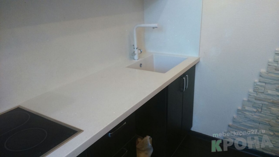 Кухня с каменной столешницей. Столешница и стеновая панель выполнены из кварца Интегрированная мойка добавляет красоты и, главное, удобства в эксплуатации кухни:ведь в таком варианте нет зазоров между столешницей и стеновой, столешницей и мойкой