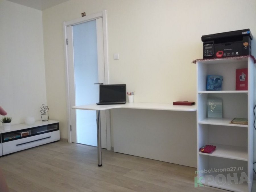 Стол письменный с тумбой Белый цвет и "лёгкое" исполнение мебели не загружают пространства комнаты,но мебель выполняет все необходимые функции