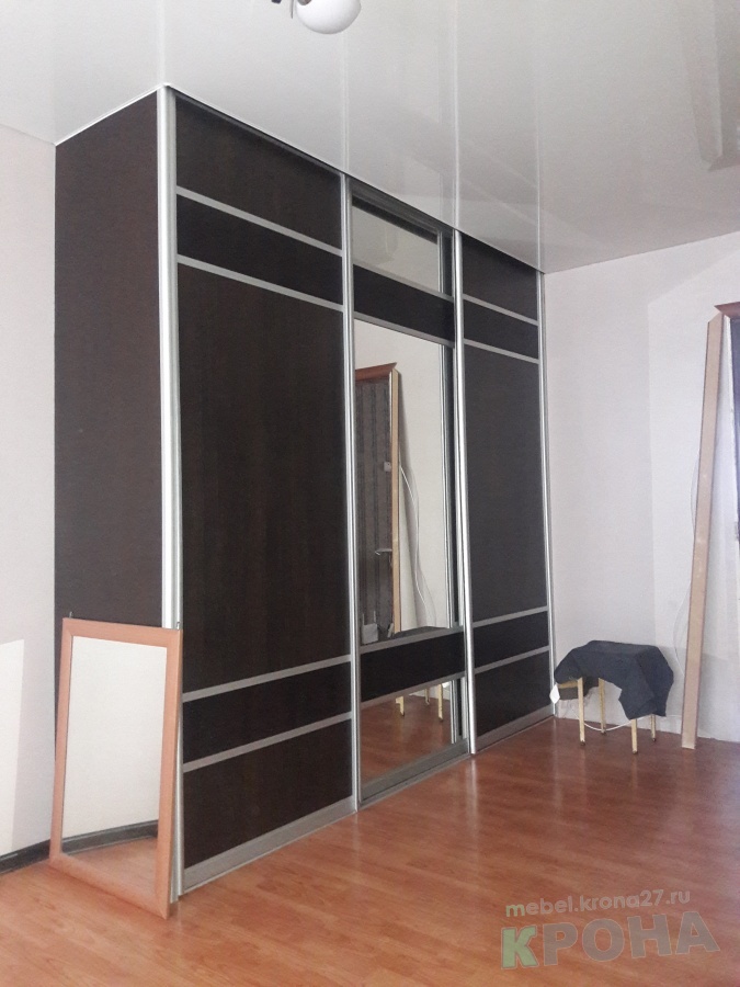 Прямой шкаф купе. Классический цвет "венге" Разделение дверей на части увеличивает пространство визуально и красиво смотрится
