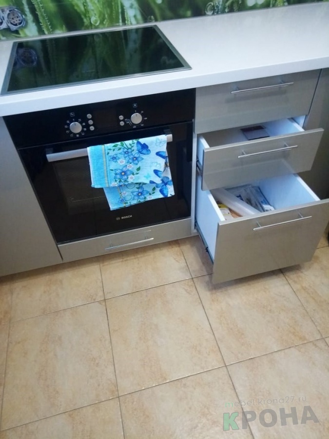 | Фурнитура: | петли с доводчиком grand, подъемный механизм blum, плинтус rehau, бутылочница, направляющие gras |