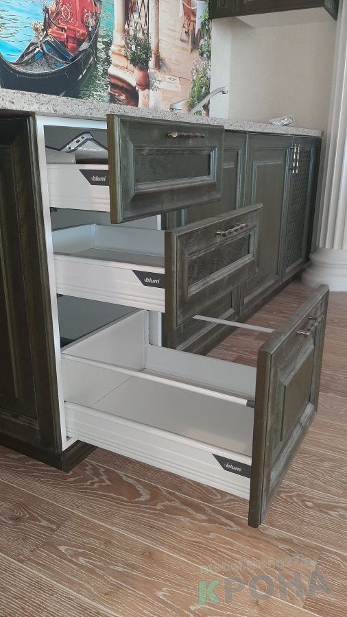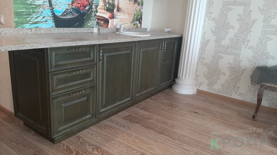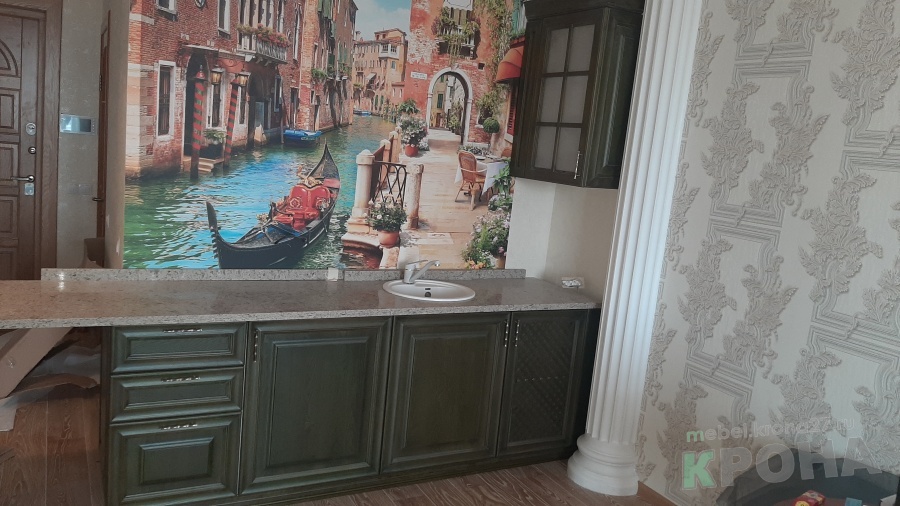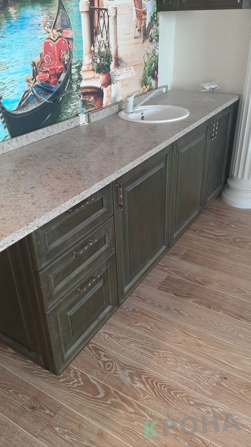 | Вид кухни: | кухня прямая, фасады-дерево, каменная столешница |