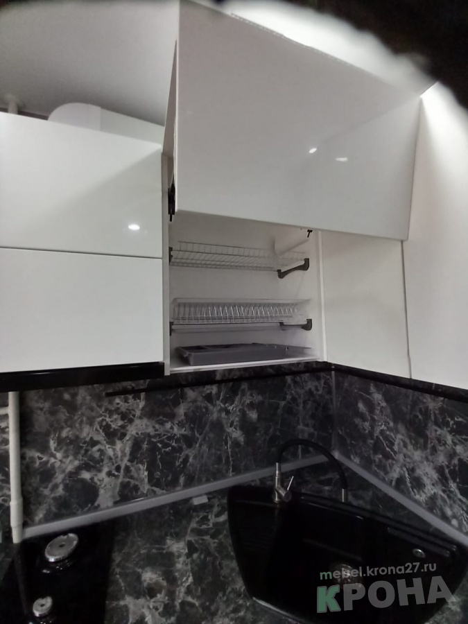 Кухня угловая с фасадами белей глянец
