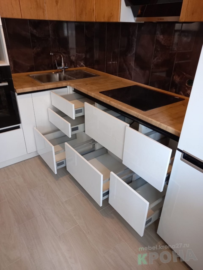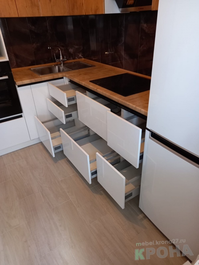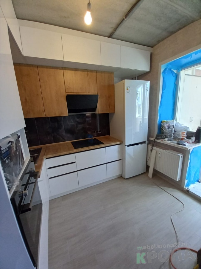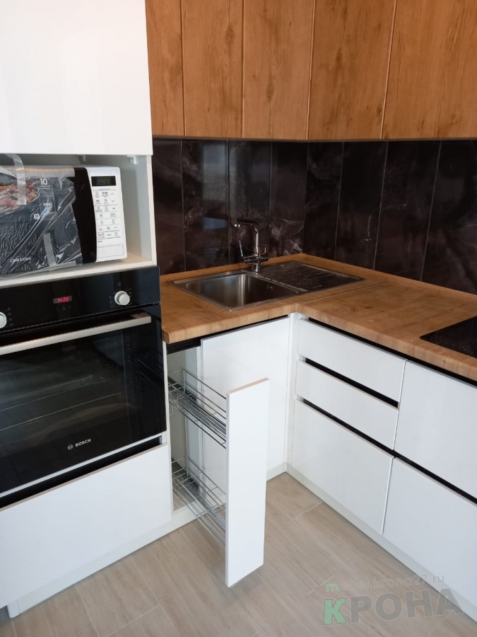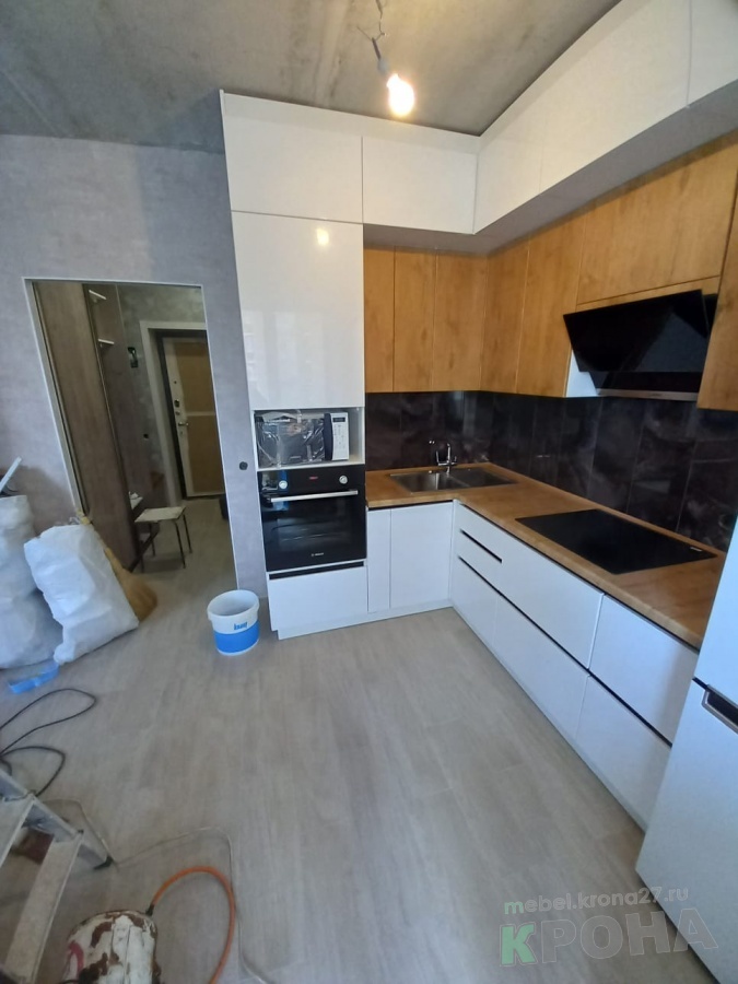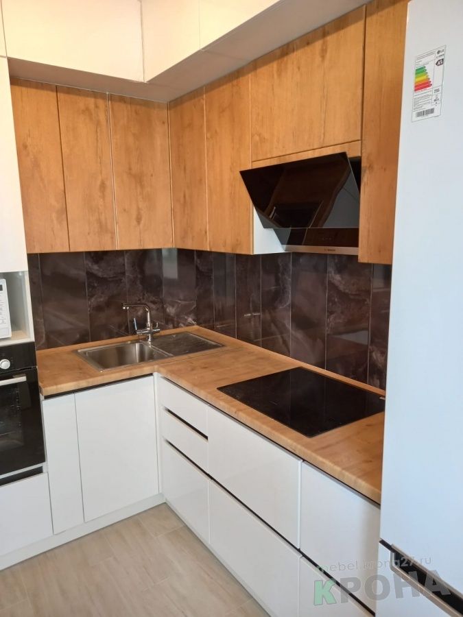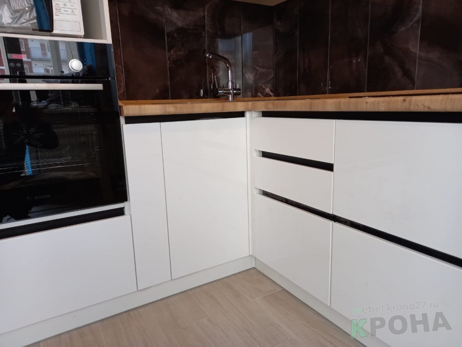 | Вид кухни: | кухня угловая, фасады-мдф пленка, интегрированные ручки |