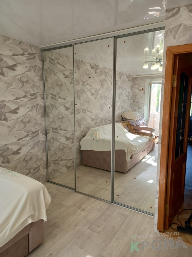 Гардеробная закрытая зеркальными дверями купе