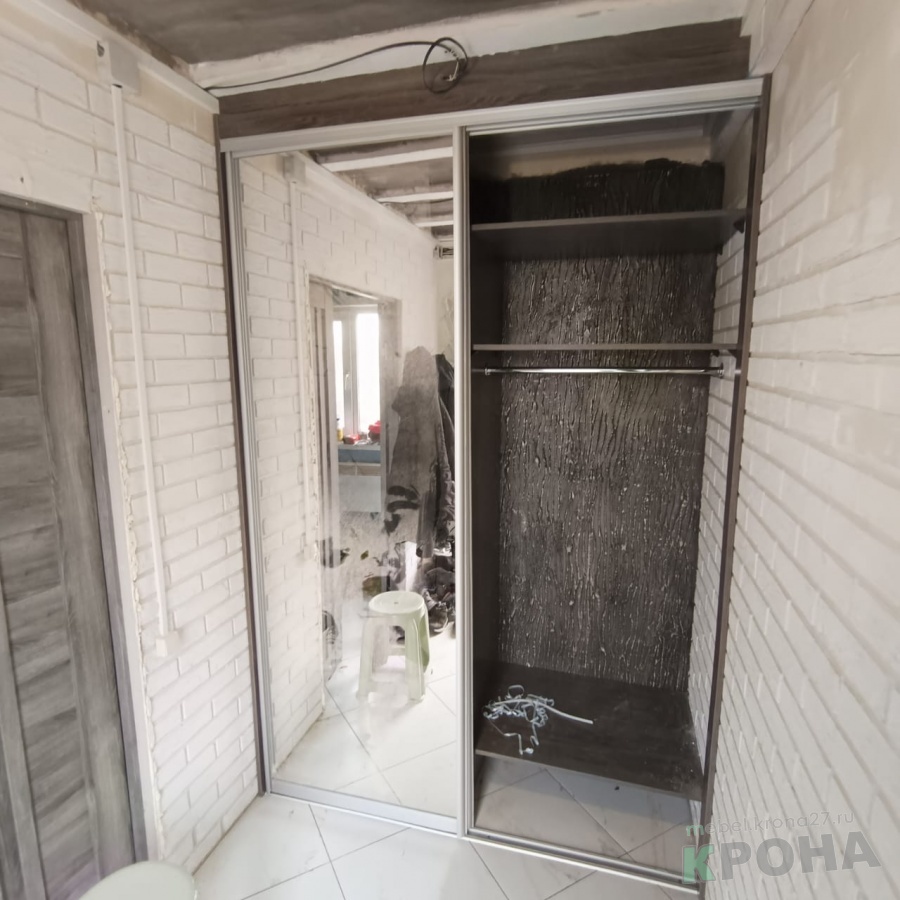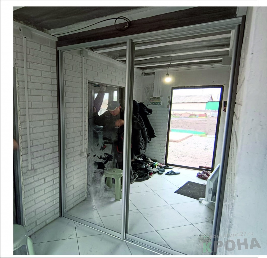Встроенный шкаф купе с зеркальными дверями, изготовлен на заказ.
