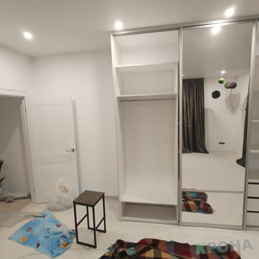 | Двери: | зеркало серебро, крашенное стекло белое |