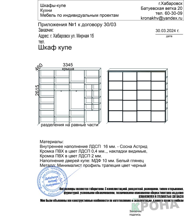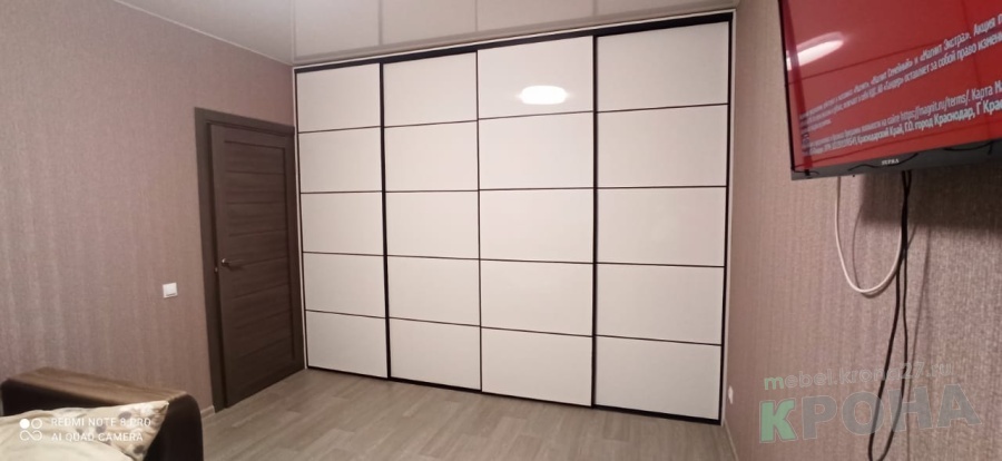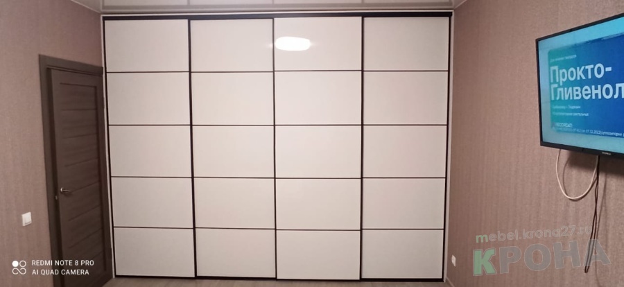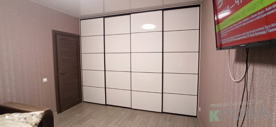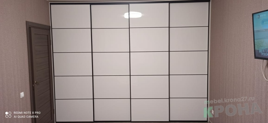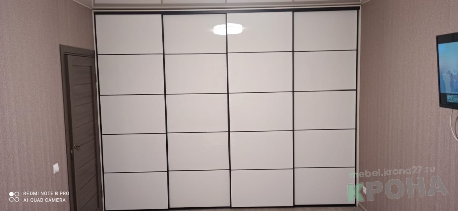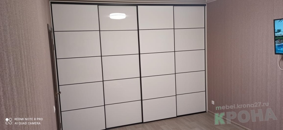 Шкаф купе 4 двери, белый глянец в разделении на 5 частей