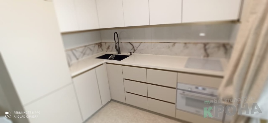| Вид кухни: | кухня угловая, фасады-мдф пленка, каменная столешница, ручка гола |