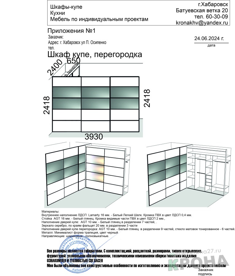 | Размер: | шкаф 2400*2400*650, перегородка 3930*2400 |