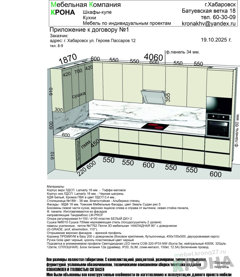 | Длина кухни: | 4060*1870 |