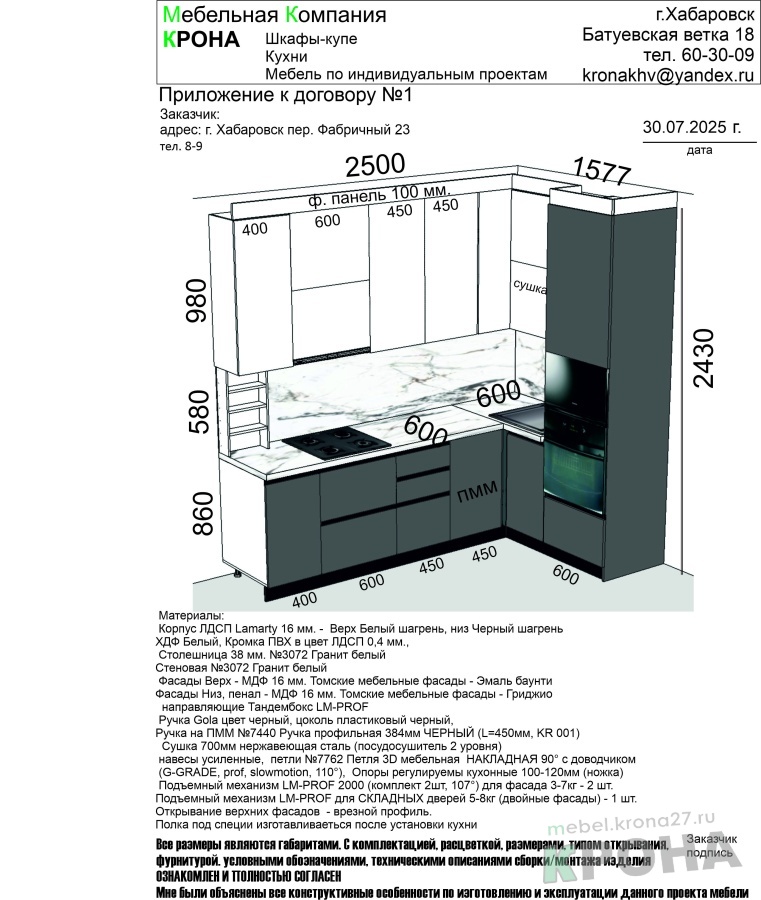 | Длина кухни: | 2500*1600 |